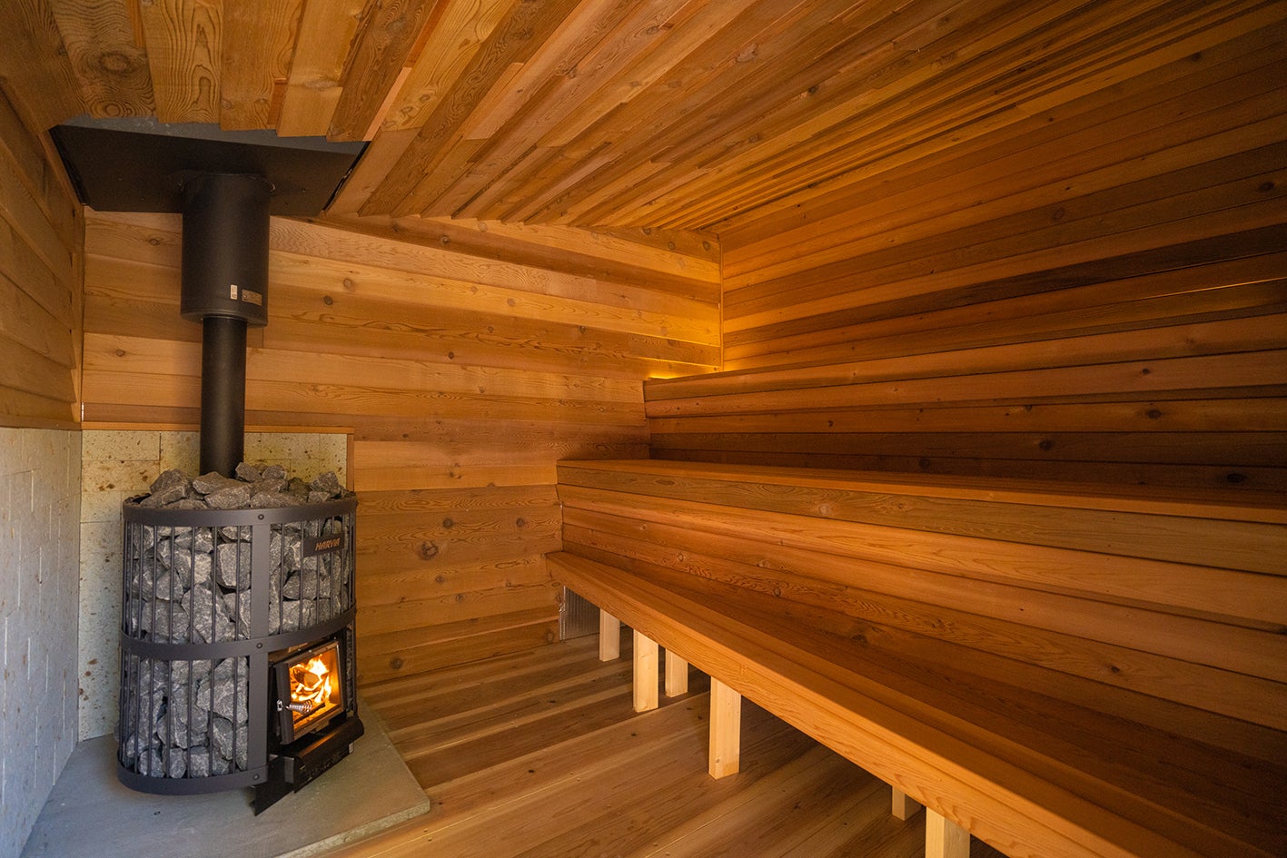 それでもやはり薪ストーブにこだわったのはその圧倒的な柔らかい輻射熱の暖かさ。ストーブの窓から見える炎のゆらめきや、薪の香りも全てが、アウトドアサウナの真髄であり、ここでしか出来ない醍醐味であると考えています。滝本も福元も自宅に薪ストーブがあり、「火のある暮らし」がいかに豊かであるか実感していた事も大きかったと思います。
